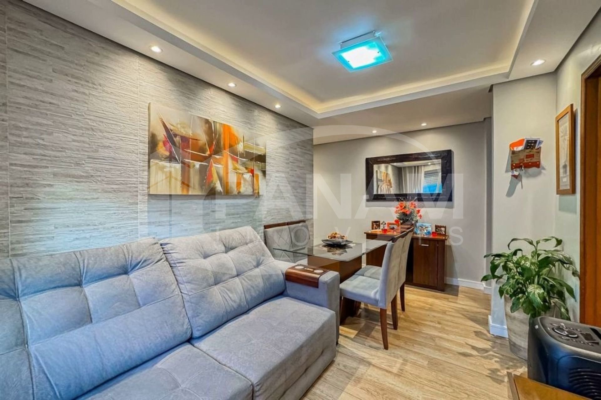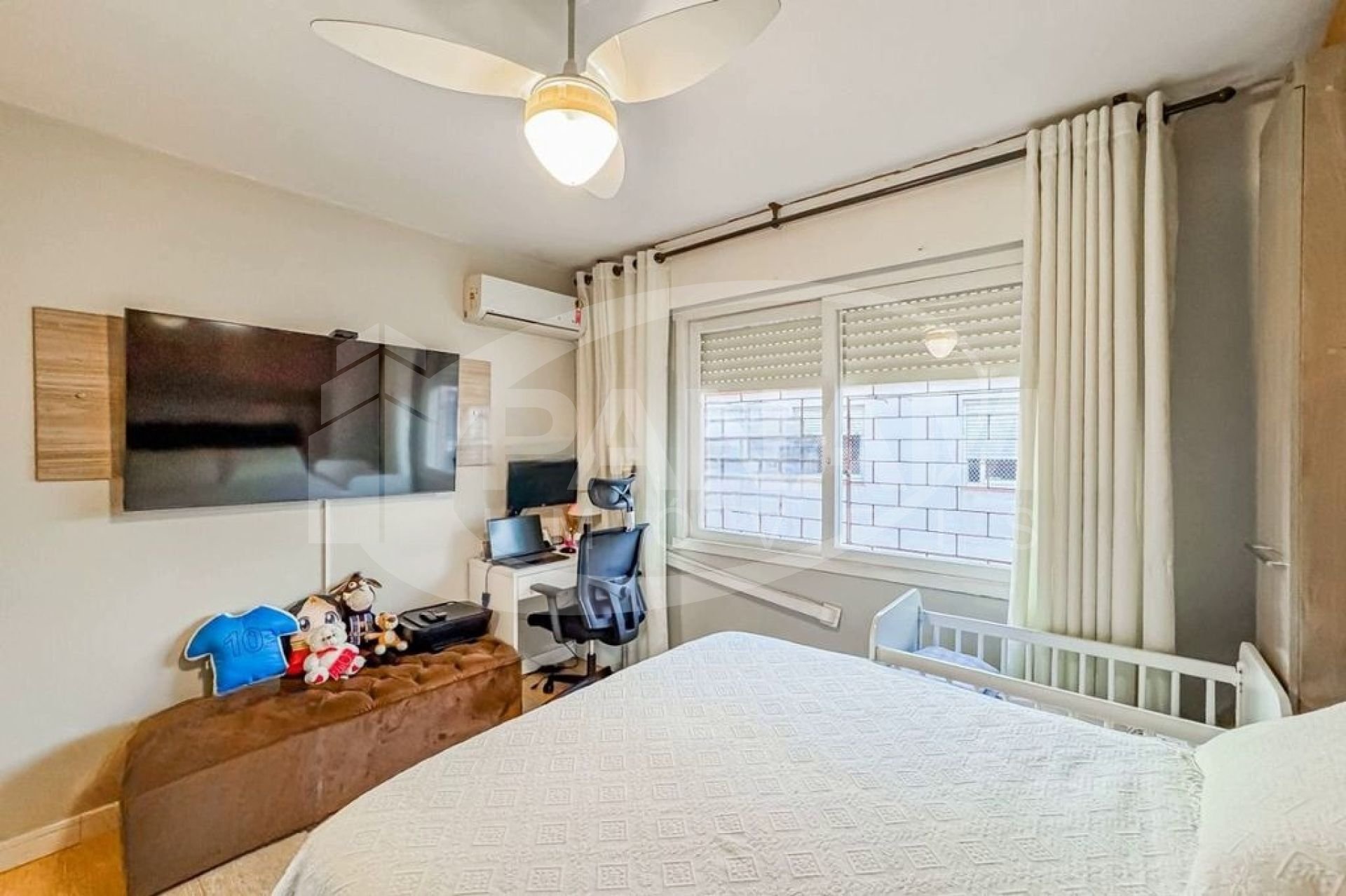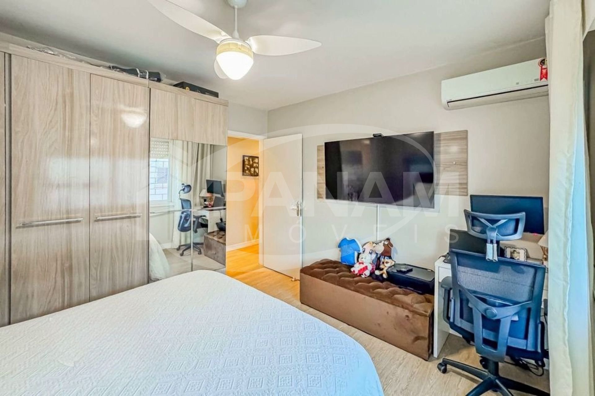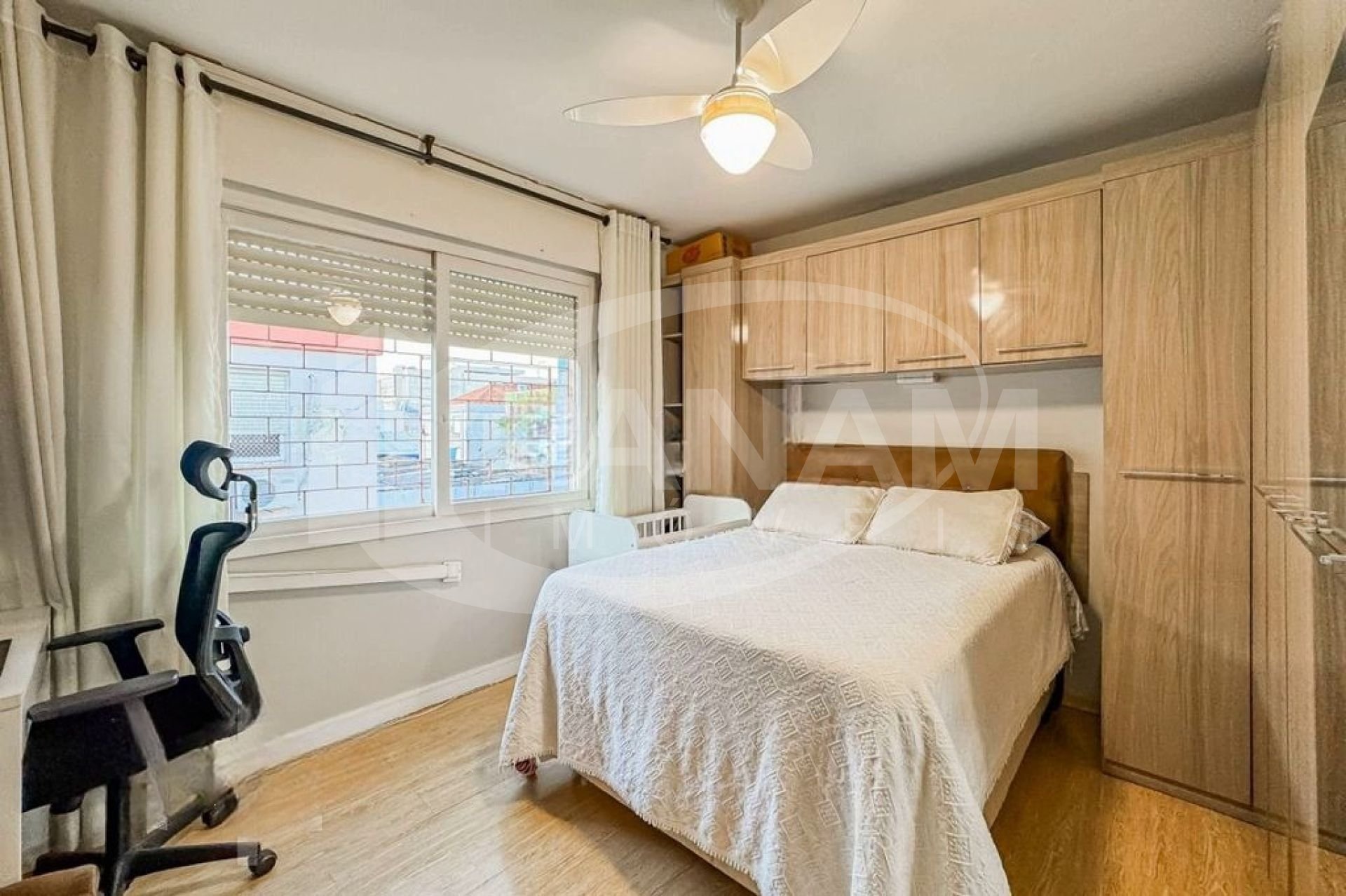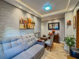Apartamento com 59m² privativos, bairro Passo da Areia, com dois dormitórios, living dois ambientes, cozinha planejada, área de serviço separada. Condomínio bairro custo com salão de festa. Ficam os móveis fixos, splits.