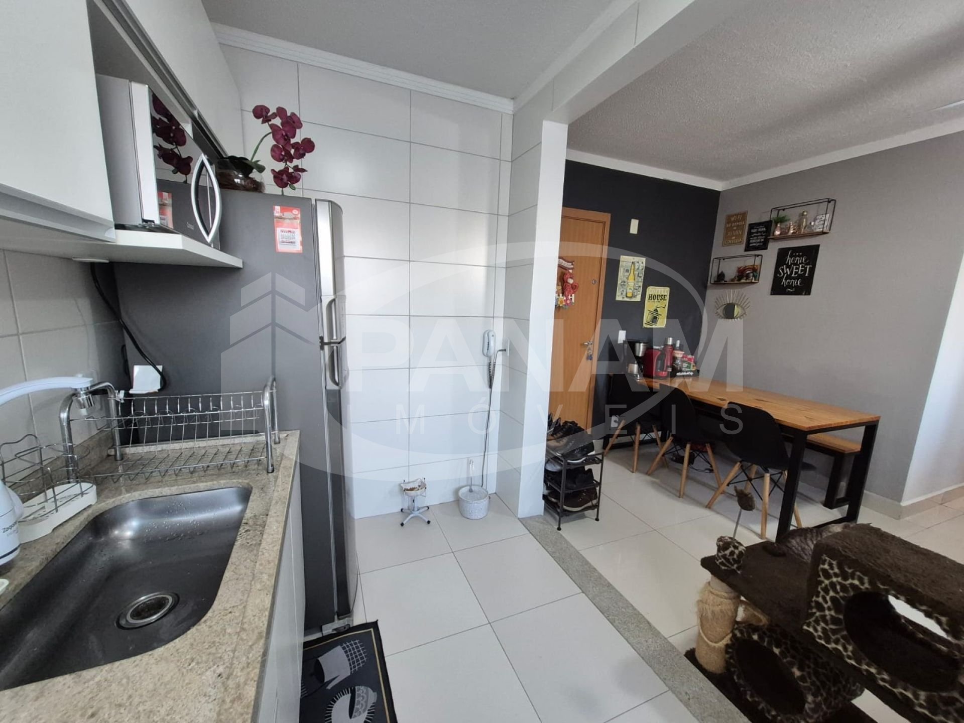 Excelente apartamento em condomínio fechado, composto de dois dormitórios, living com dois ambiente, banheiro social, cozinha e área de serviço. Apartamento em andar alto com linda vista, com ventilação cruzada. Apartamento totalmente reformado, com piso novo, elétrica e hidráulica, ficam móveis fixos de ótima qualidade. Vaga de estacionamento escriturada! O condomínio oferece infraestrutura completa com portaria 24 horas, piscinas adulto e infantil, salão de festas, playground, quiosques com churrasqueira, quadra esportiva e mercado interno - ideal para quem busca praticidade no dia a dia. Em uma região em expansão, próximo a grandes avenidas, à Praça México e com fácil acesso a diversos serviços e comércios da zona norte de Porto Alegre.