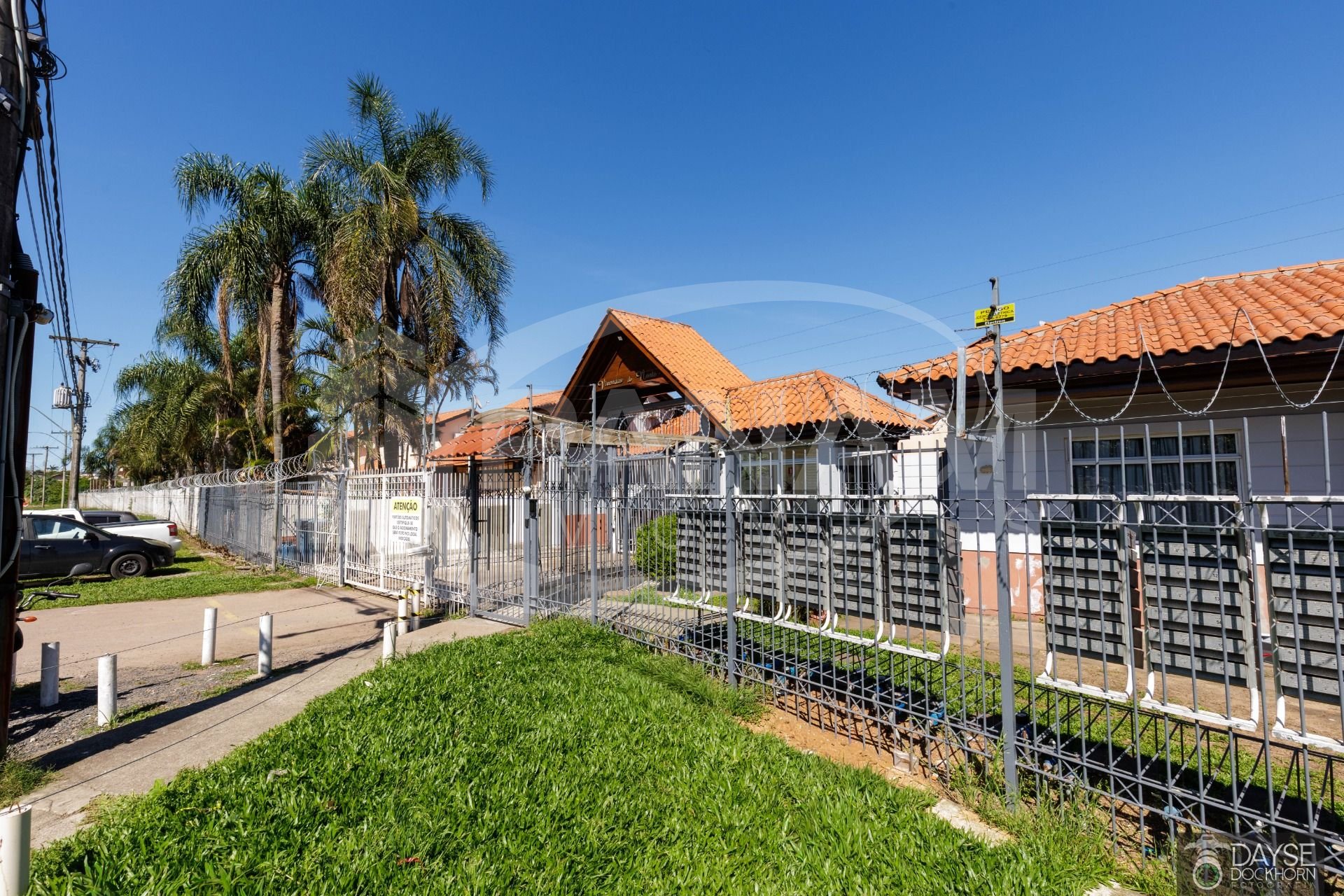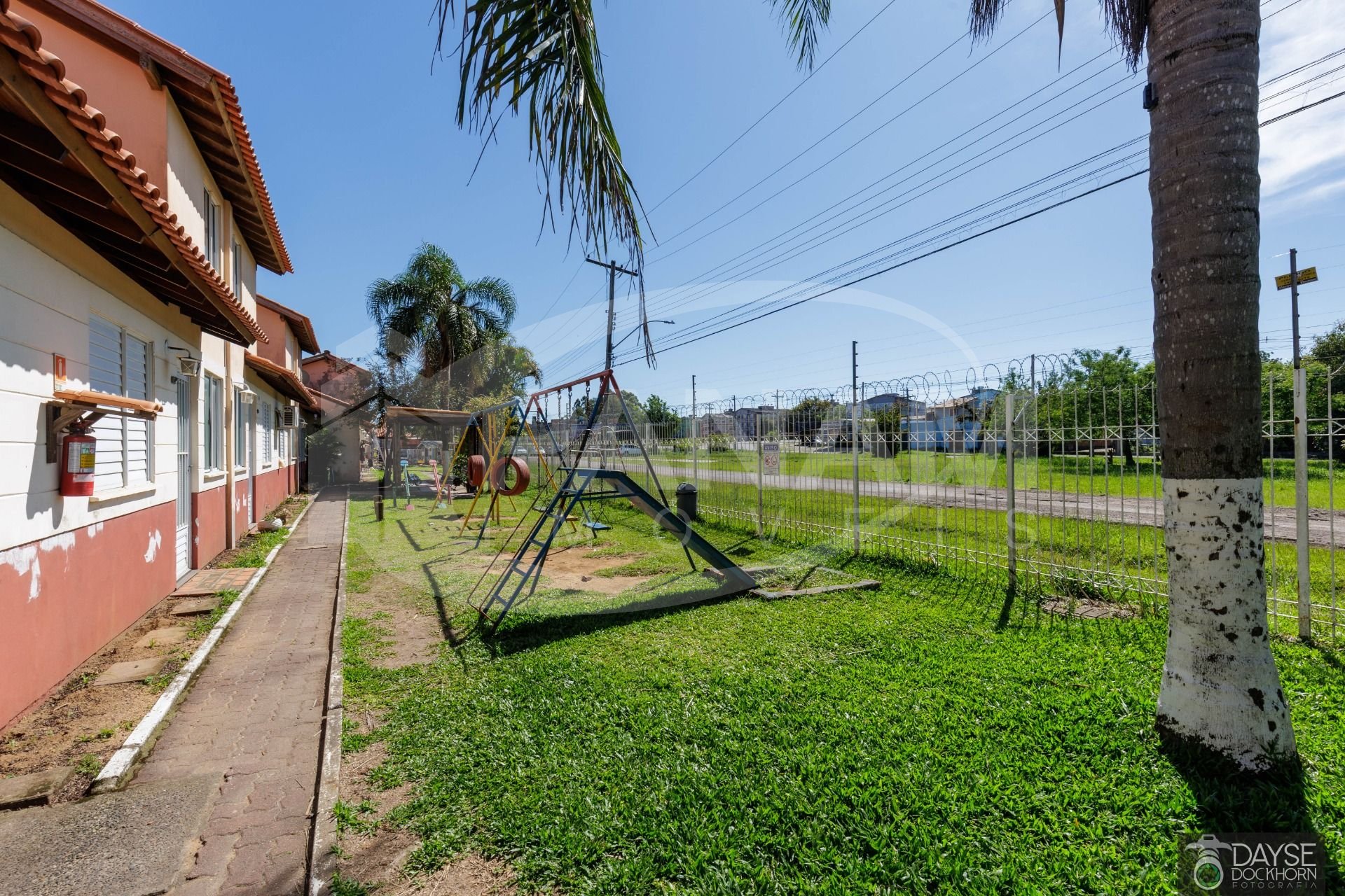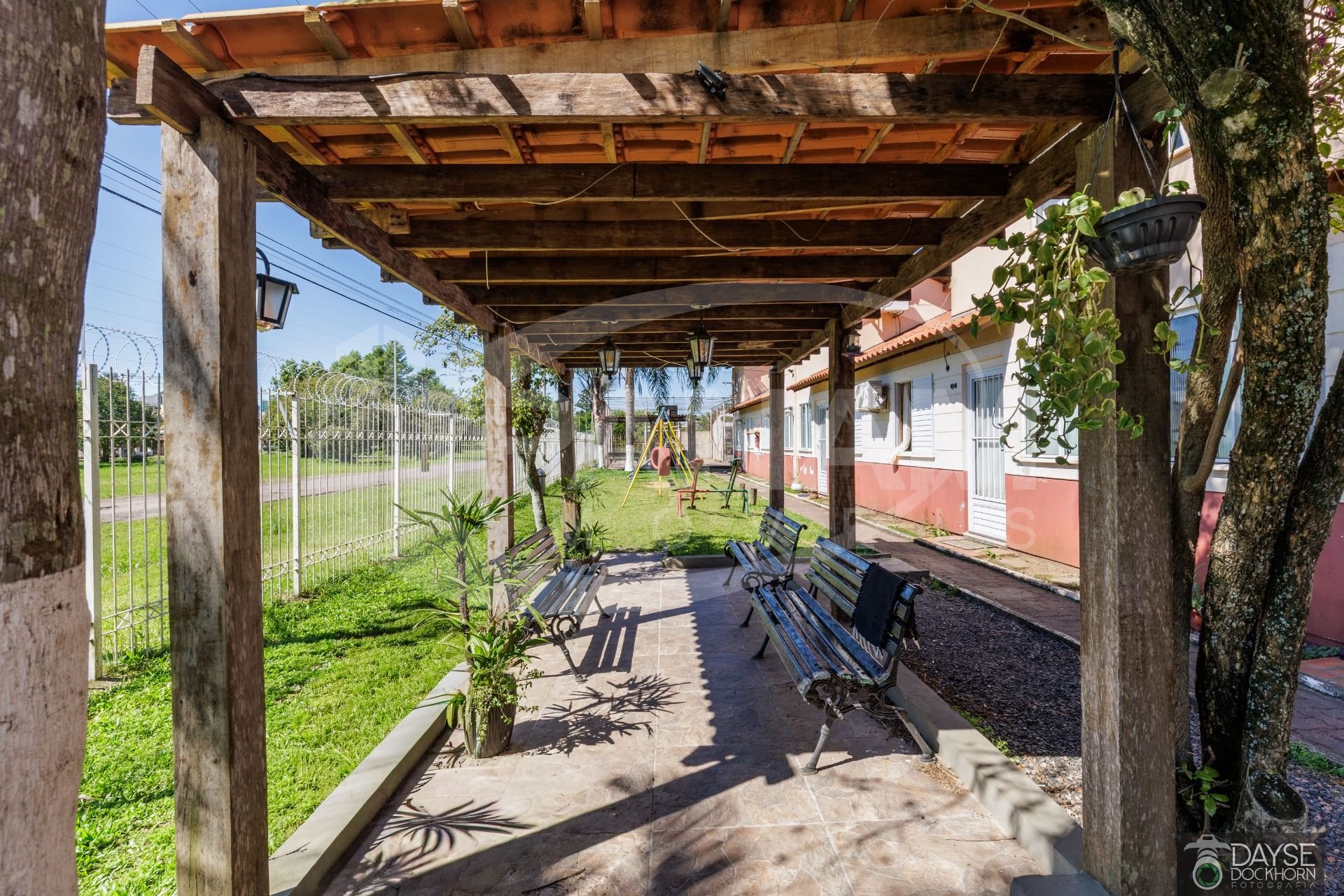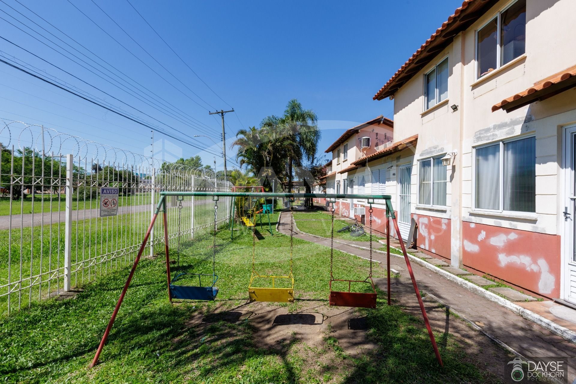 Casa em condomínio fechado no bairro Santa Fé. Casa com três dormitórios, living com dois ambientes, um lindo mezanino, banheiro social, cozinha e área de serviço, pátio com churrasqueira e vaga escriturada. Split instalado e outro ar condicionado de parede, piso frio na sala, banheiro e cozinha, dormitórios com piso laminado. Condomínio com portaria 24 horas, pracinha infantil, quadra de esportes, piscina adulto e infantil, salão de festas, conta também com mercado dentro do condomínio. Aceita financiamento e fgts .