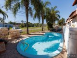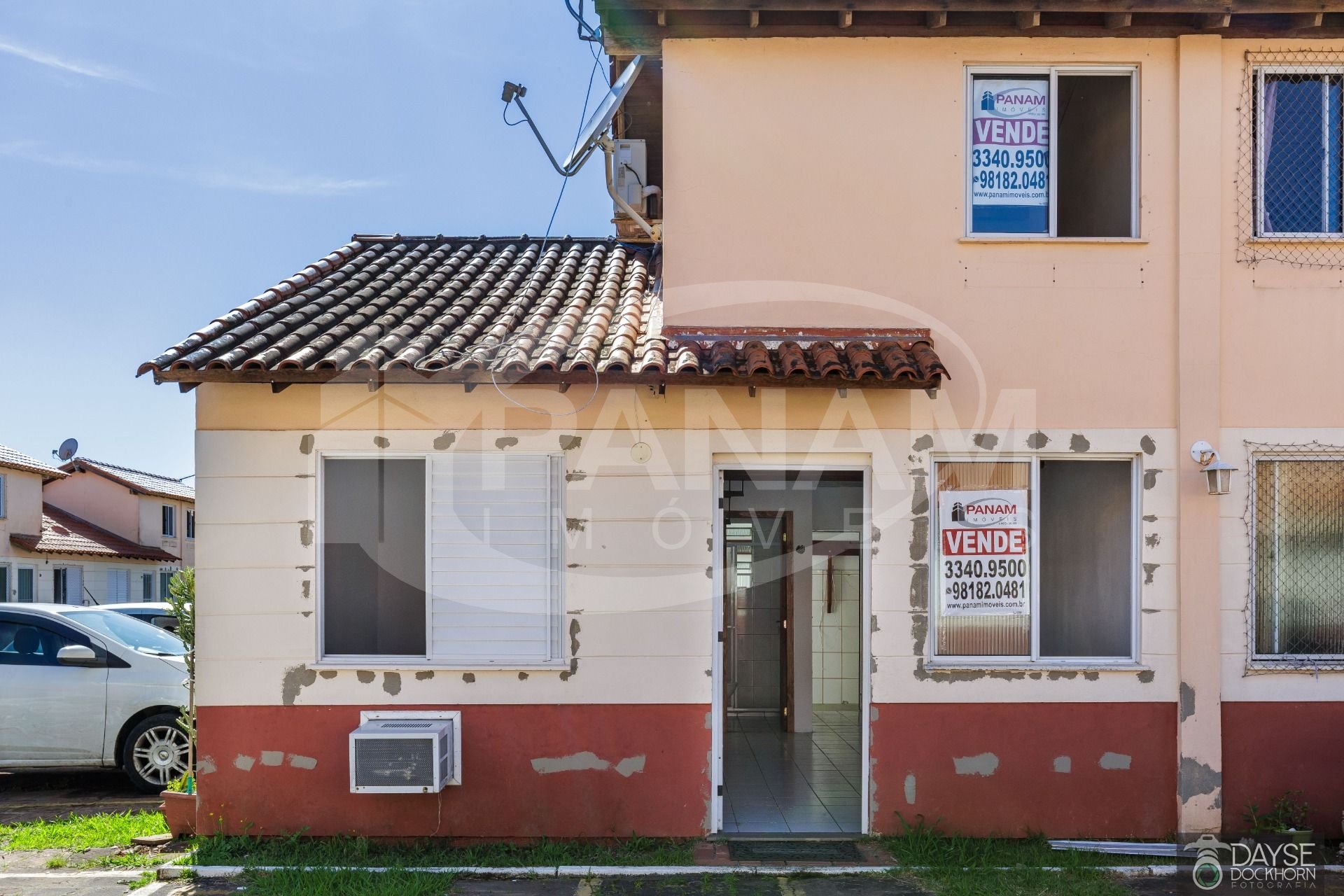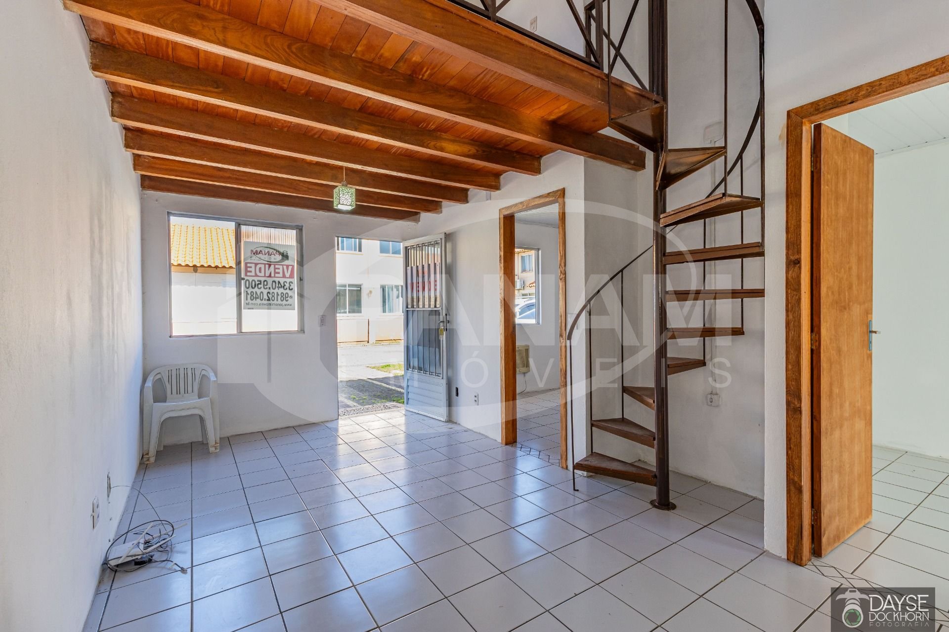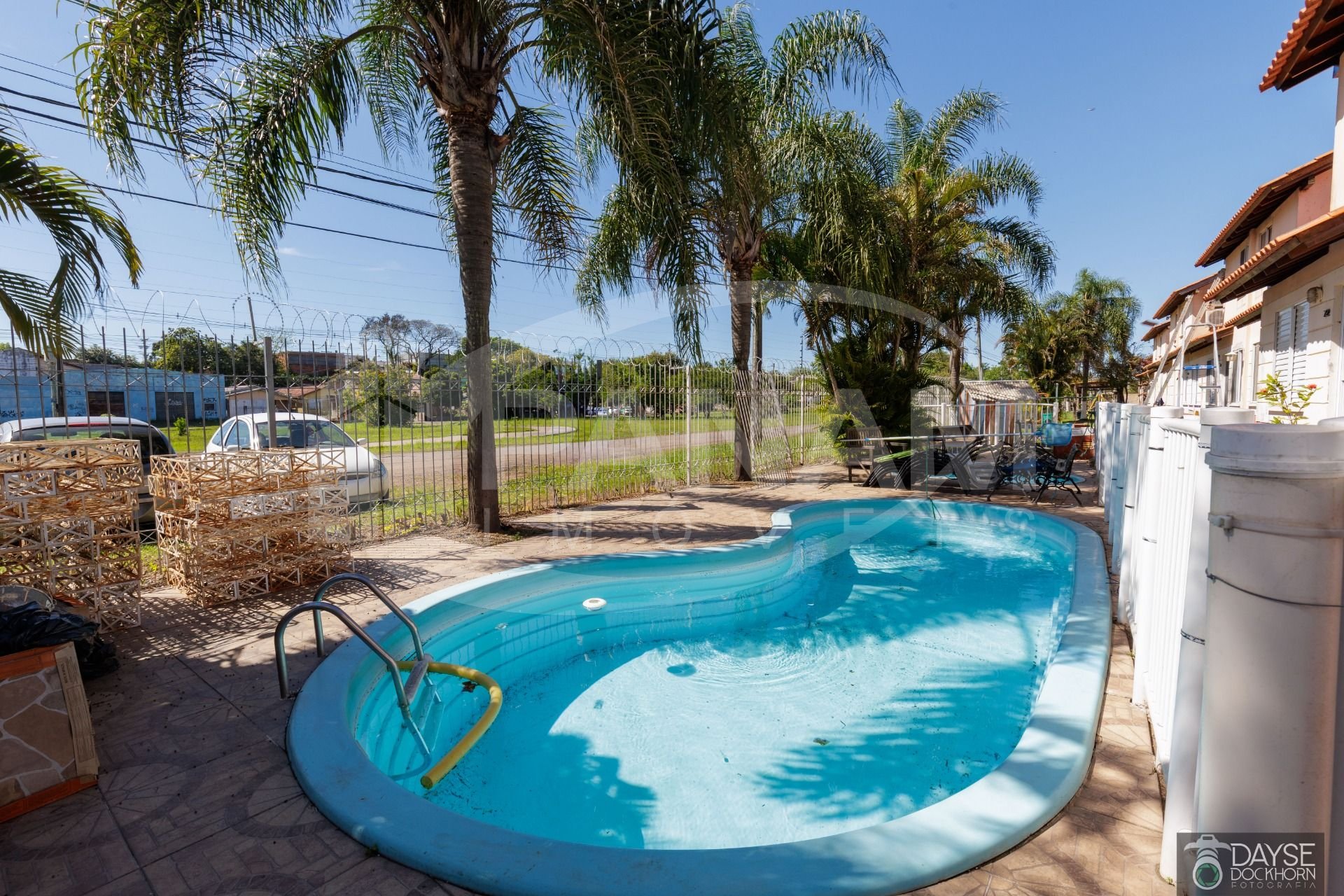 Casa em condomínio fechado no bairro Santa Fé. Casa com três dormitórios, living com dois ambientes, um lindo mezanino, banheiro social, cozinha e área de serviço, pátio com churrasqueira e vaga escriturada. Split instalado e outro ar condicionado de parede, piso frio na sala, banheiro e cozinha, dormitórios com piso laminado. Condomínio com portaria 24 horas, pracinha infantil, quadra de esportes, piscina adulto e infantil, salão de festas, conta também com mercado dentro do condomínio. Aceita financiamento e fgts .
