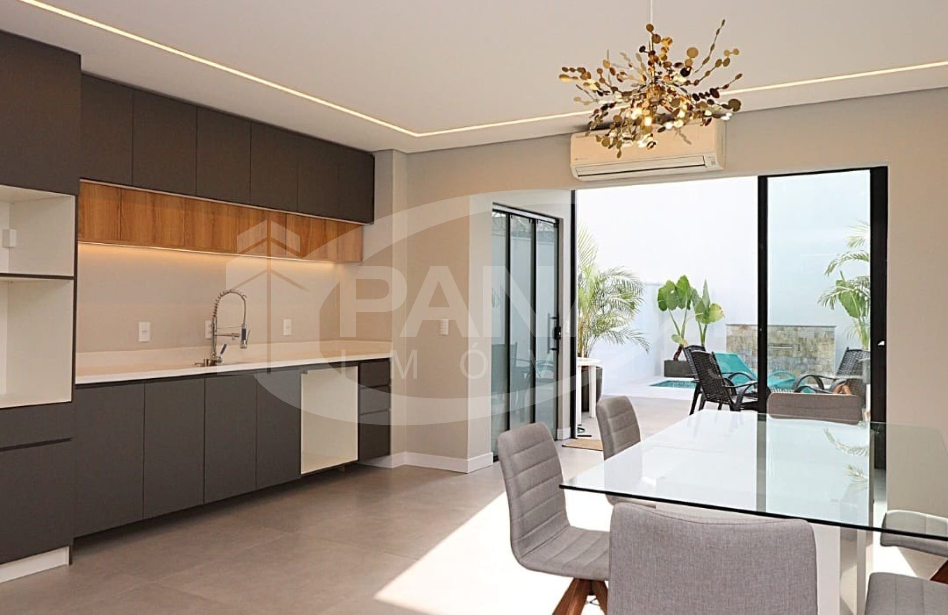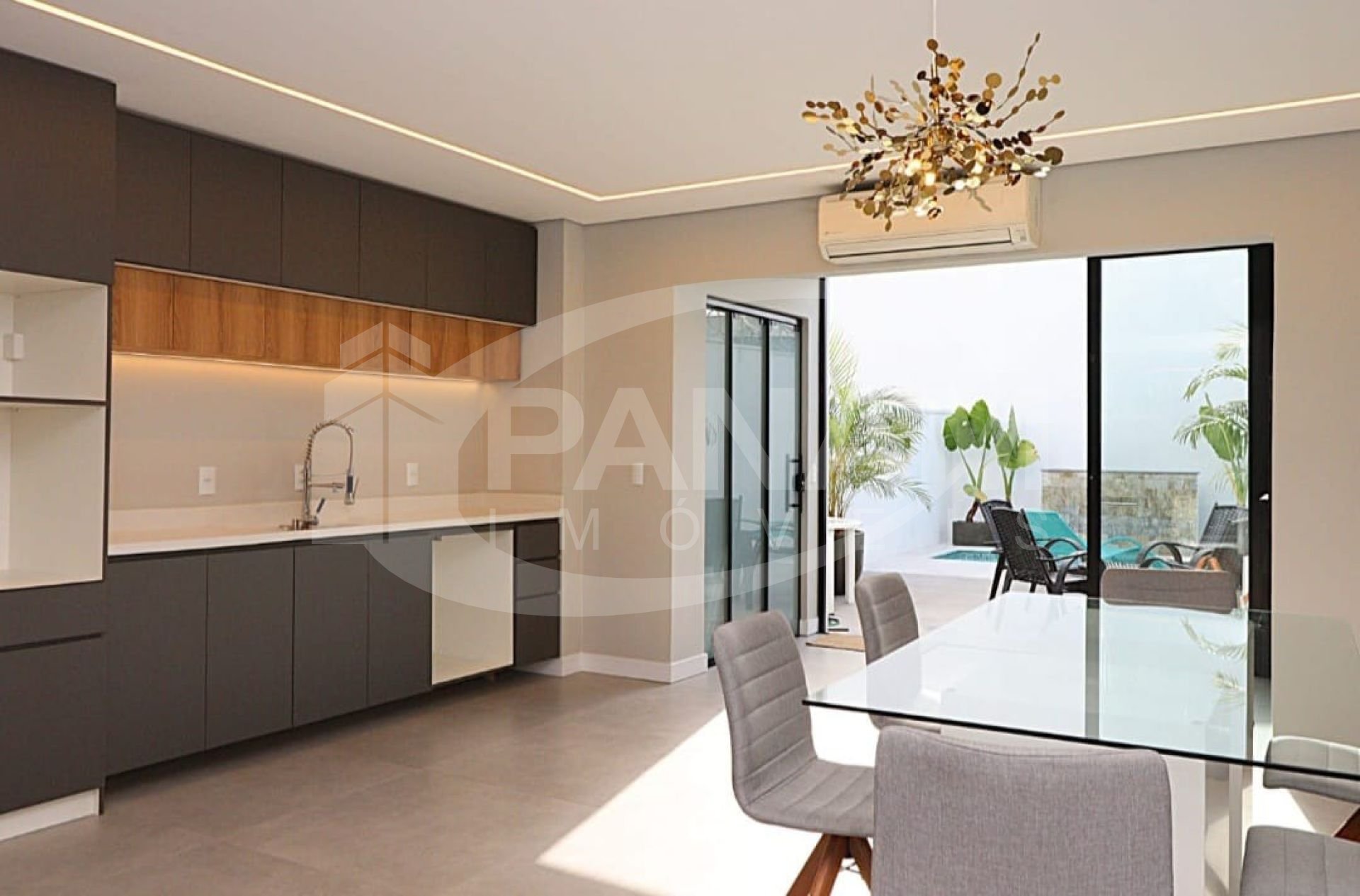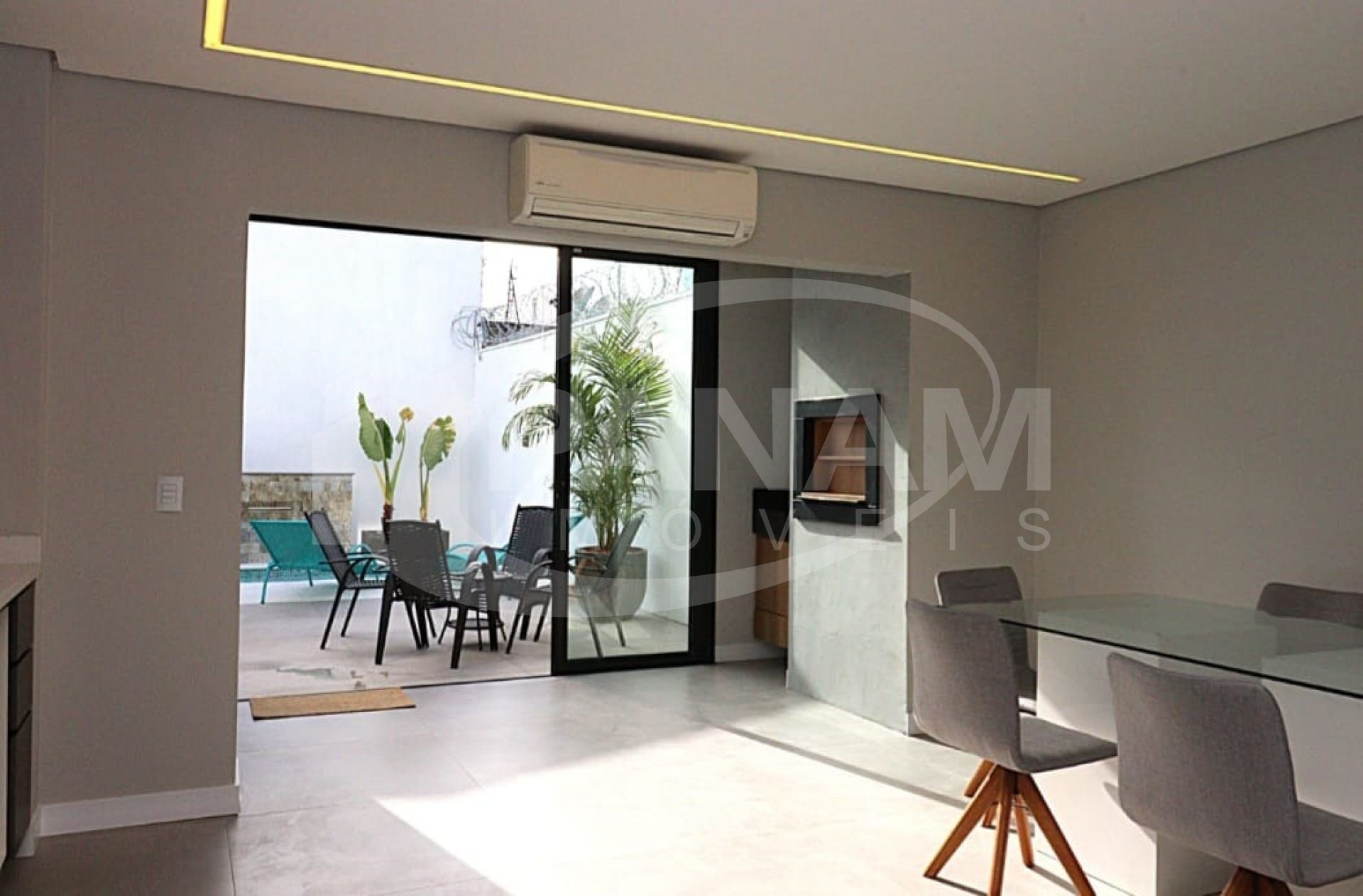 Casa/sobrado com 03 dormitoprios´01 suíte com closet , outros 02 dormitórios com sacada. Na parte térrea ; sala de estar/jantar lavabo, cozinha, espaço gourmet com churrasqueira e quintal. Móveis planejados nos banheiros na cozinha bancadas em quartzo . Piso vinilico no andar superior e porcelanato no estar cozinha e banheiros. Pátio da frente com espaço para 04 veículos e pátio nos fundos com 90m2 privativo piscina com aquecimento e clorador faz seu próprio cloro. Segundo pavimento ; quarto com suíte e closet , banheiro social e outros 02 quartos com sacada. Abertura e persianas automatizadas. Agende uma visita