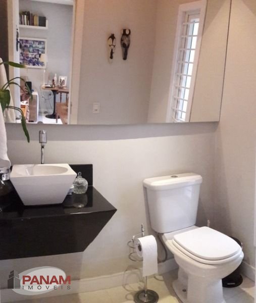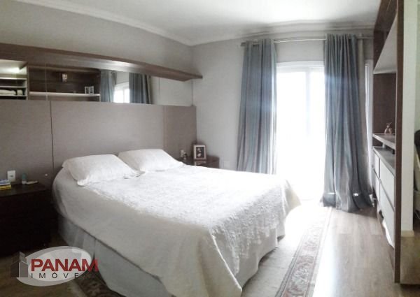 Excelente sobrado semi mobiliado, imóvel diferenciado, ótima construção e qualidade. Primeiro andar, garagem fechada para três carros, banheiro e hall de entrada. Segundo andar com, lavabo, jardim de inverno,amplo living, todo em porcelanato, integrado ao espaço gourmet com churrasqueira, cozinha, área de serviço e pátio. Terceiro andar com 3 suítes, sendo suíte master com closet e estar íntimo. Com armários sob medida na cozinha, banheiros e dormitório de casal com closet, ficam 5 splits na casa. Agende conosco sua visita! (51) 3340.9500 | 98182.0481 Whats Panam Imóveis Ltda